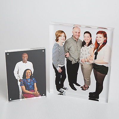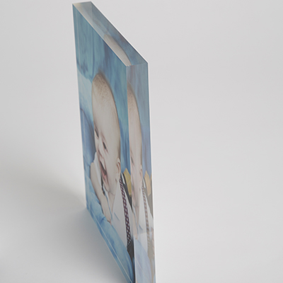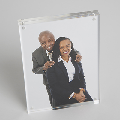 Our Freestanding 20mm Acrylic Blocks have a photographic print seamlessly mounted to the back giving a striking modern alternative to the traditional desktop frame. They are available in 9 different sizes to choose from. All our blocks are laser cut and diamond polished to give you the very best optically clear block. The reverse of the block is finished with a black velvet covering. They also come in a presentation box.